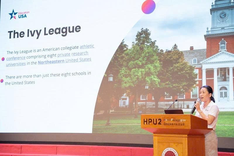 Chiều ngày 15/4/2026, Trường ĐHSP Hà Nội 2 đã tổ chức thành công Hội thảo “Tổng quan về hệ thống giáo dục Hoa Kỳ”. Sự kiện không chỉ cung cấp cái nhìn toàn diện về nền giáo dục hàng đầu thế giới mà còn mang đến những kinh nghiệm thực tiễn quý báu cho lộ trình du học của sinh viên.